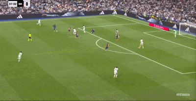 第22分钟,贝林厄姆精准直塞,姆巴佩反越位,单刀突入禁区推射破门,皇马1-0巴萨!
