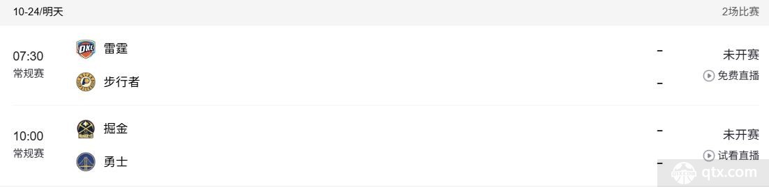 附上2025-26赛季NBA常规赛10月24日赛程时间表(主队在后):