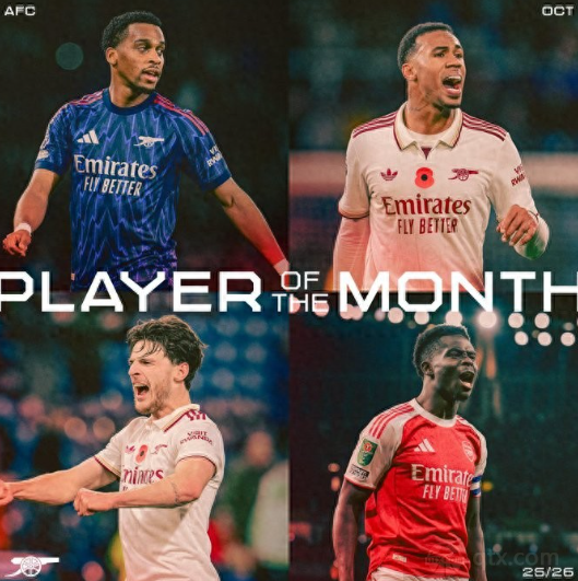 球天下11月4日讯 阿森纳官方公布了球队10月最佳球员的候选名单,其中球队前锋萨卡、中场赖斯以及后卫廷贝尔和加布里埃尔入选,这几名球员都在10月份的比赛贡献了出色的发挥,因此入选球队10月最佳候选,阿森纳官方将会在近期公布获奖的球员。
