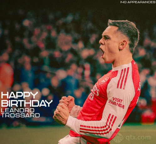 阿森纳社媒为特罗萨德庆生 球员本赛季贡献优秀表现