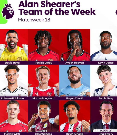 球天下12月30日讯 英超第18轮的比赛已经全部结束,英超官方在本轮比赛结束之后发布了英格兰足球名宿希勒评选的本轮英超最佳阵容。在这份阵容中,有多支豪门球队的球员入选,比如阿森纳、曼城、利物浦、热刺以及曼联都有球员在列,另外阿斯顿维拉、布伦特福德以及富勒姆也有球员入选。阿森纳、曼联以及热刺入选球员最多,都有2名球员入选阵容。