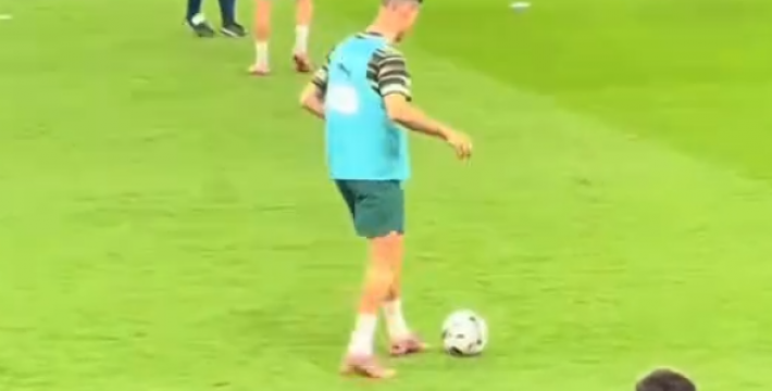 老艺术家的从容,C罗赛前逆足脚高难度停球